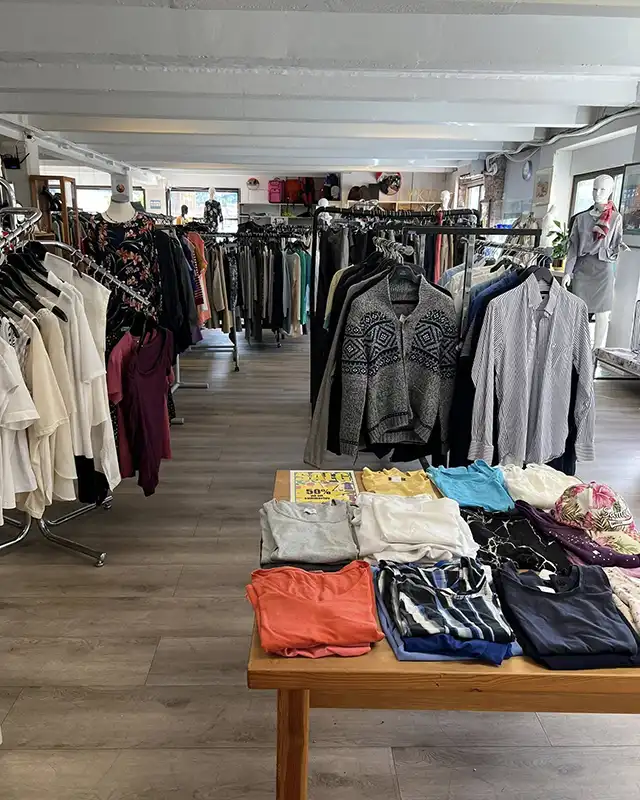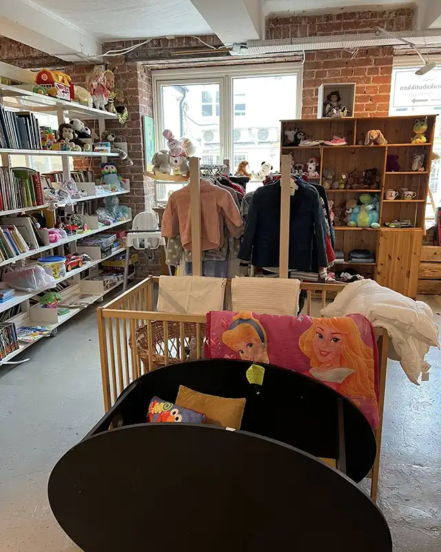 Her finner du et bredt utvalg varer: møbler, klær og sko til barn og voksne, serviser og glass, spill, leker, bøker, lamper, hvitevarer og mye mer. Alle medarbeiderne jobber frivillig, og overskuddet går til både lokale og internasjonale prosjekter.