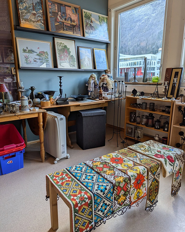 Spesielle gjenstander legges jevnlig ut på auksjon i butikken. Besøkende kan se utvalget og legge inn bud direkte i butikk. Hele og rene varer innen de nevnte kategoriene mottas kostnadsfritt i åpningstiden. Levering eller henting av større møbler kan avtales på forhånd.